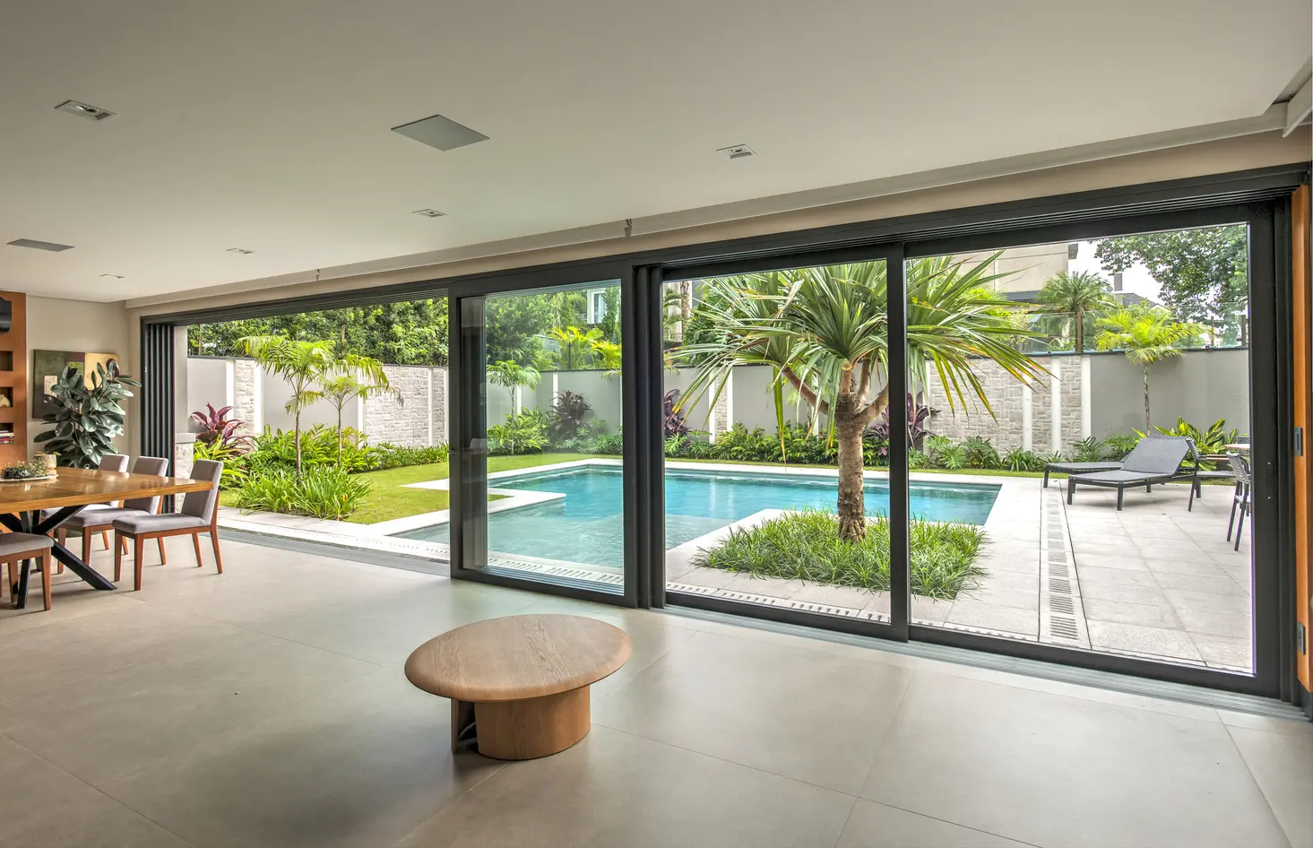 Uma porta de correr é um tipo de porta que desliza horizontalmente sobre um trilho, ao contrário de uma porta convencional que abre para dentro ou para fora, exigindo espaço de giro. A principal vantagem é a economia de espaço, pois ela não invade o ambiente quando aberta, sendo uma solução ideal para otimizar áreas pequenas e integrar ou separar espaços de forma flexível.